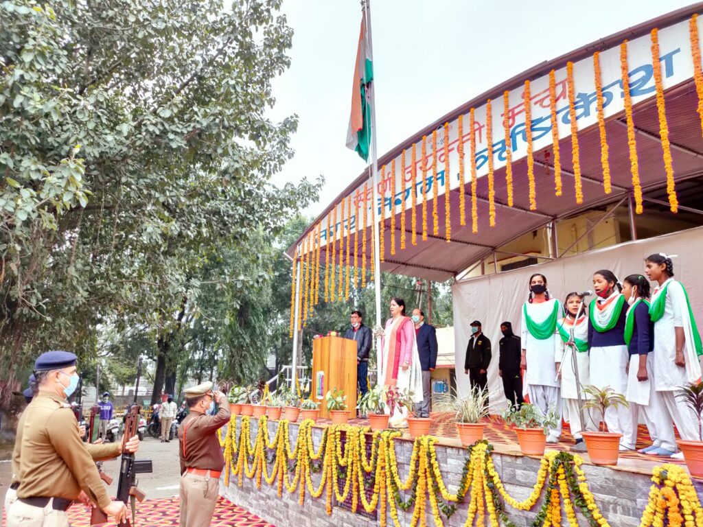 पूर्व निर्धारित कार्यक्रम अनुसार नगर निगम महापौर अनिता ममगाई ने ध्वजारोहण किया।इस अवसर पर शहरवासियों को अपने संदेश में सबसे पहले देश की रक्षा की खातिर प्राण न्योछावर करने वाले अमर शहीदों को नमन किया।उन्होंने ऐसे वीर सपूतों को जन्म देने वाली माताओं के देश के प्रति अतुलनीय योगदान को सदैव याद रखने की बात कही।उन्होंने शहरवासियों को गणतंत्र दिवस की बधाई देते हुए कहा कि यह वक्त कोरोना के नये वेरिएंट के चलते खतरनाक है ।प्रत्येक नागरिक को ऐसे समय में अपनी जिम्मेदारी समझनी होगी। शारीरिक दूरी का पालन करने के साथ मास्क का प्रयोग सबको करने की जरूरत है। उन्होंने कहा कि नगर निगम की टीम ऐसे समय में जन स्वास्थ्य के प्रति पूरी तरह से संवेदनशील है। उन्होंने कहा कि देश के प्रधानमंत्री नरेंद्र मोदी ने जिस साहस और दूरदर्शिता के साथ पूरी दुनिया में इस वैश्विक महामारी की अगुवाई की है वो एक मिसाल है।देश में टीकाकरण अभियान की सफलता की वजह से ही आज ओमीक्रान के बड़ते प्रभाव के बावजूद लोगों की जिंदगी सुरक्षित बनी हुई है।इस दौरान सहायक नगर आयुक्त एलम दास, अधिशासी अभियंता विनोद जोशी, सहायक अभियंता आनंद मिश्र वान, पार्षद कमलेश जैन, देवेश्वर प्रसाद रतूड़ी (पूर्व सैनिक) ,जगत स्वरूप भटनागर,वेद प्रकाश कुलियाल आदि उपस्थित रहे। इसके प्रश्चात महापौर ने राज्य आंदोलनकारियों के साथ निगम के इन्द्रमणि सभागार के बाहर भी ध्वजारोहण किया। इस मौके पर उन्होंने कार्यक्रम में मोजूद तमाम आंदोलनकारियों को गणतंत्र दिवस समारोह की बधाई भी दी।