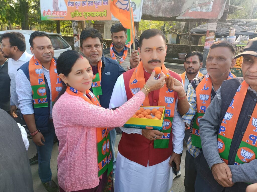 भाजपा की जीत पर सुरेन्द्र सिंह के नेतृत्व मे भाजपाईयो ने मनाया जश्न