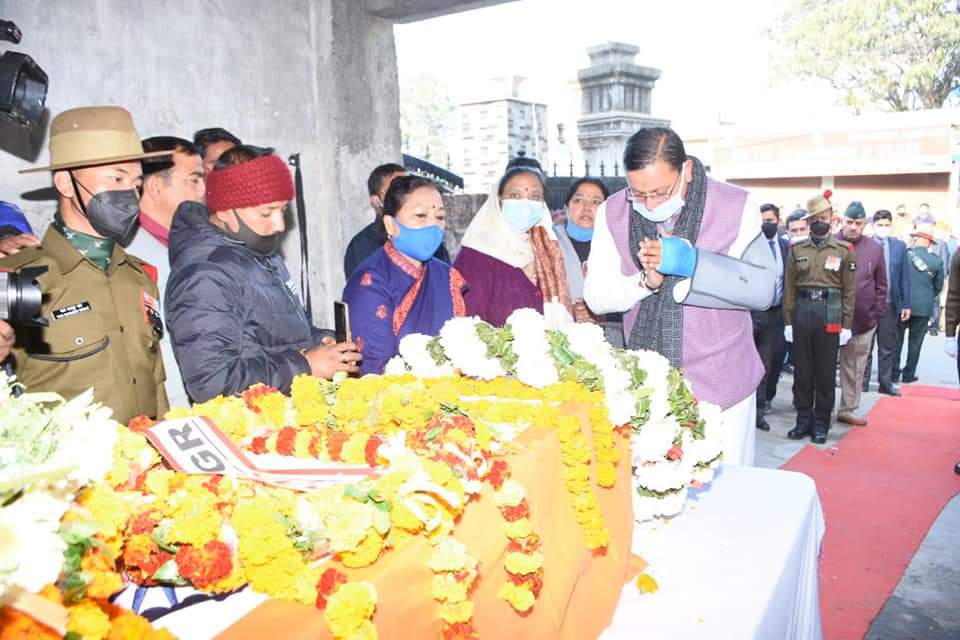 शहीद हवलदार प्रदीप थापा को श्रद्धांजलि देने पहुंचे सीएम धामी